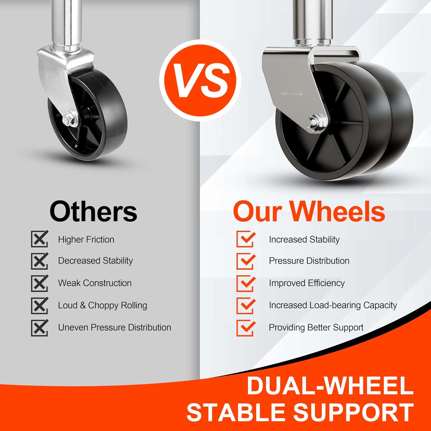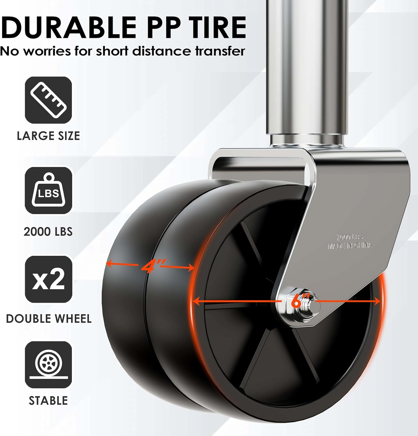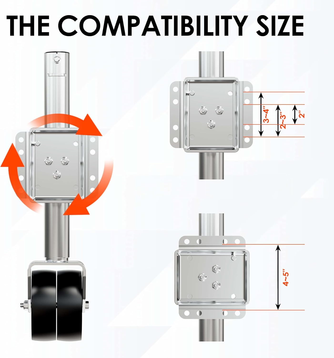 - Powerful Dual PP Tire: Move through tough terrains with our Trailer Jack's sturdy PP tire; its expansive surface area ensures smooth transit, while the tire's resistance to sinking tackles mud, gravel, and sharp rocks