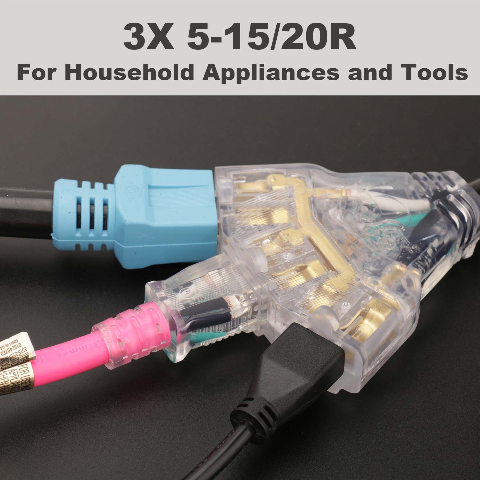 • Electrical Rating: NEMA TT-30P male for RV or generator power socket, 3X NEMA 5-15R/5-20R T-Blade household connectors for household electrical appliances and tools, 10 gauge 12 inch