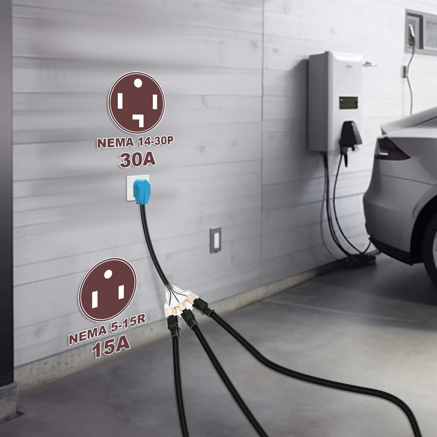 - Electrical Rating: NEMA 14-30P male for dryer, 3X NEMA 5-15R T-Blade household connectors for household electrical appliances and tools, 10 gauge 12 inches