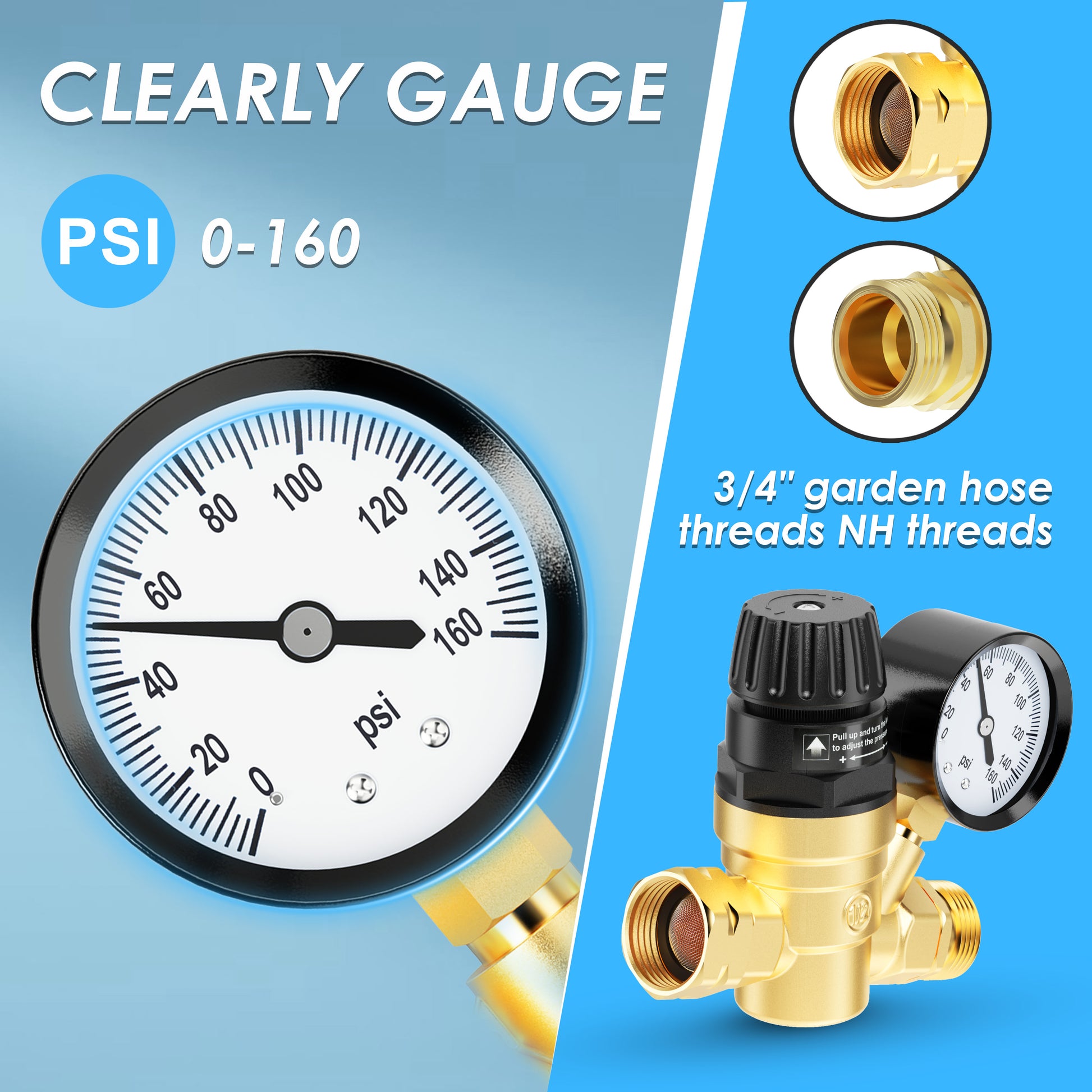 - PRESSURE MONITORING: Features an easy-to-read gauge that measures water pressure from 0 to 160 PSI for precise control